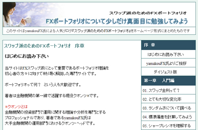 | 開発者yamakouFX氏がFXのスワップ派のためのポートフォリオ理論を易しく解説したブログ。 |